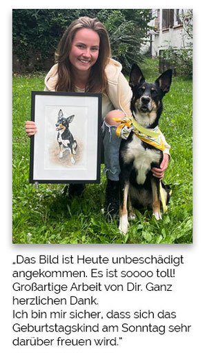 Sobald das Portrait fertiggestellt ist, wird es verschickt. Das restliche Honorar muss erst nach Erhalt des Portraits gezahlt werden.