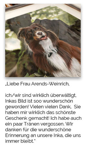 So entsteht ein Original das Erinnerungen an besondere Momente schafft. In jedem traditionellen Tierportrait lebt die Erinnerung an einen geliebten Begleiter und die Seele des Künstlers.